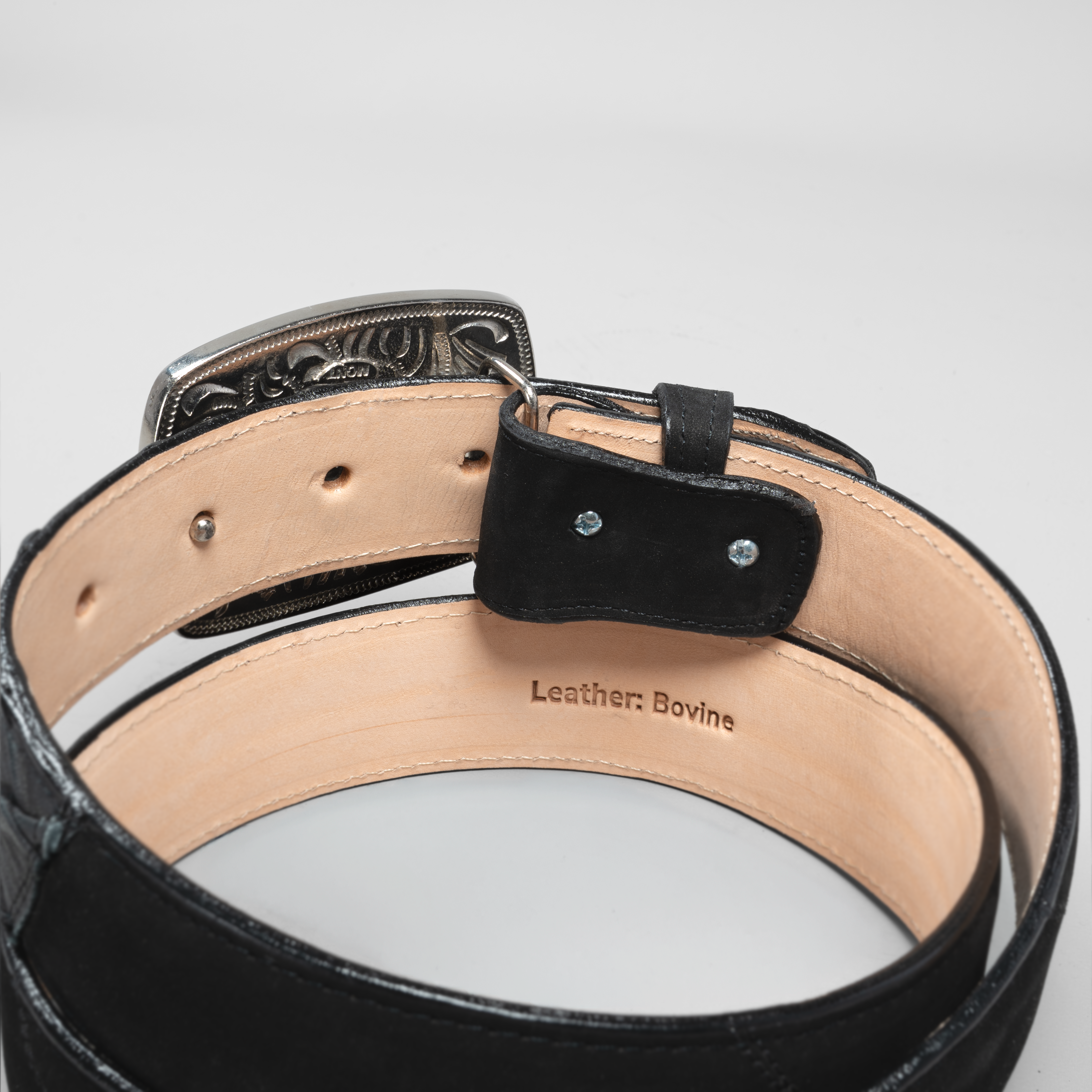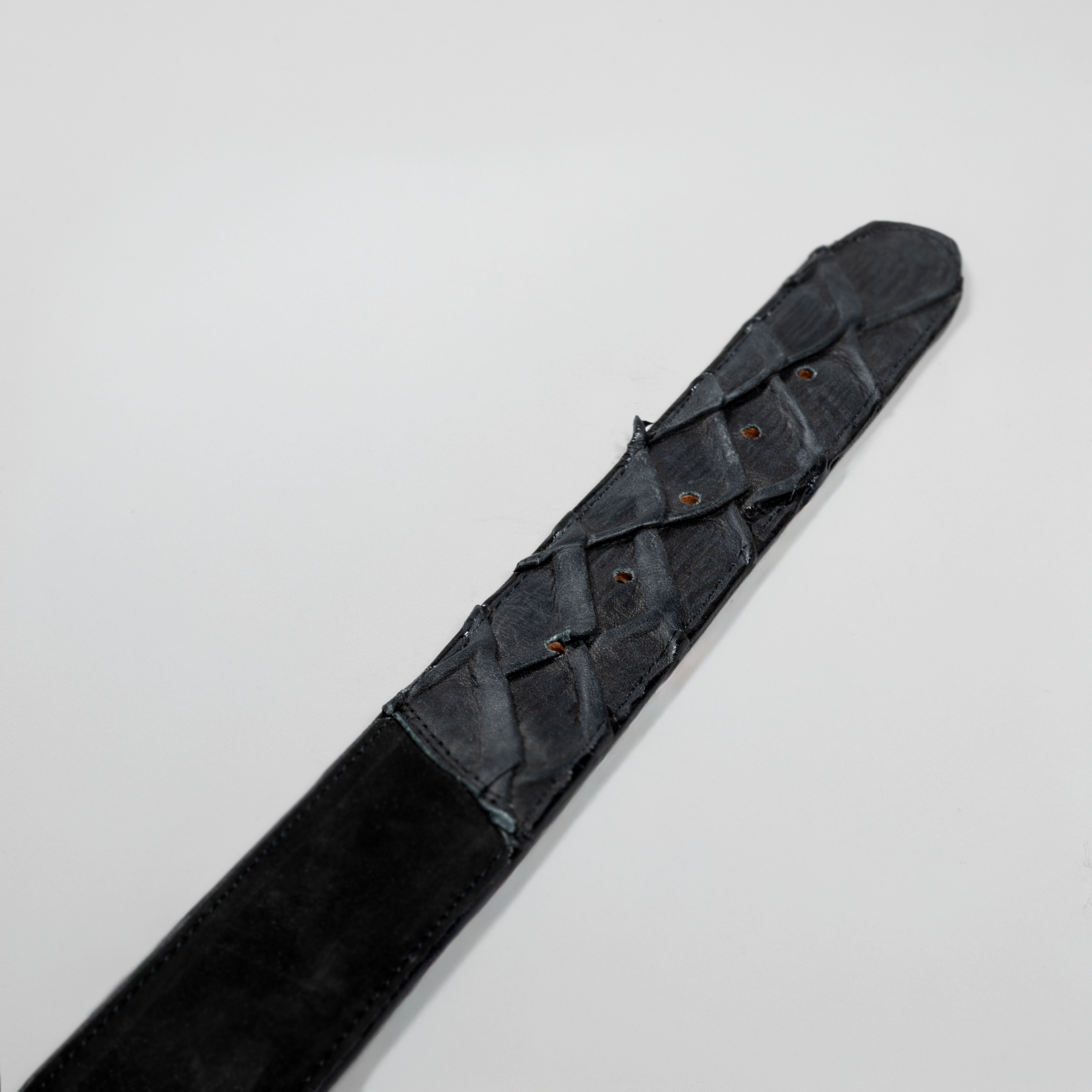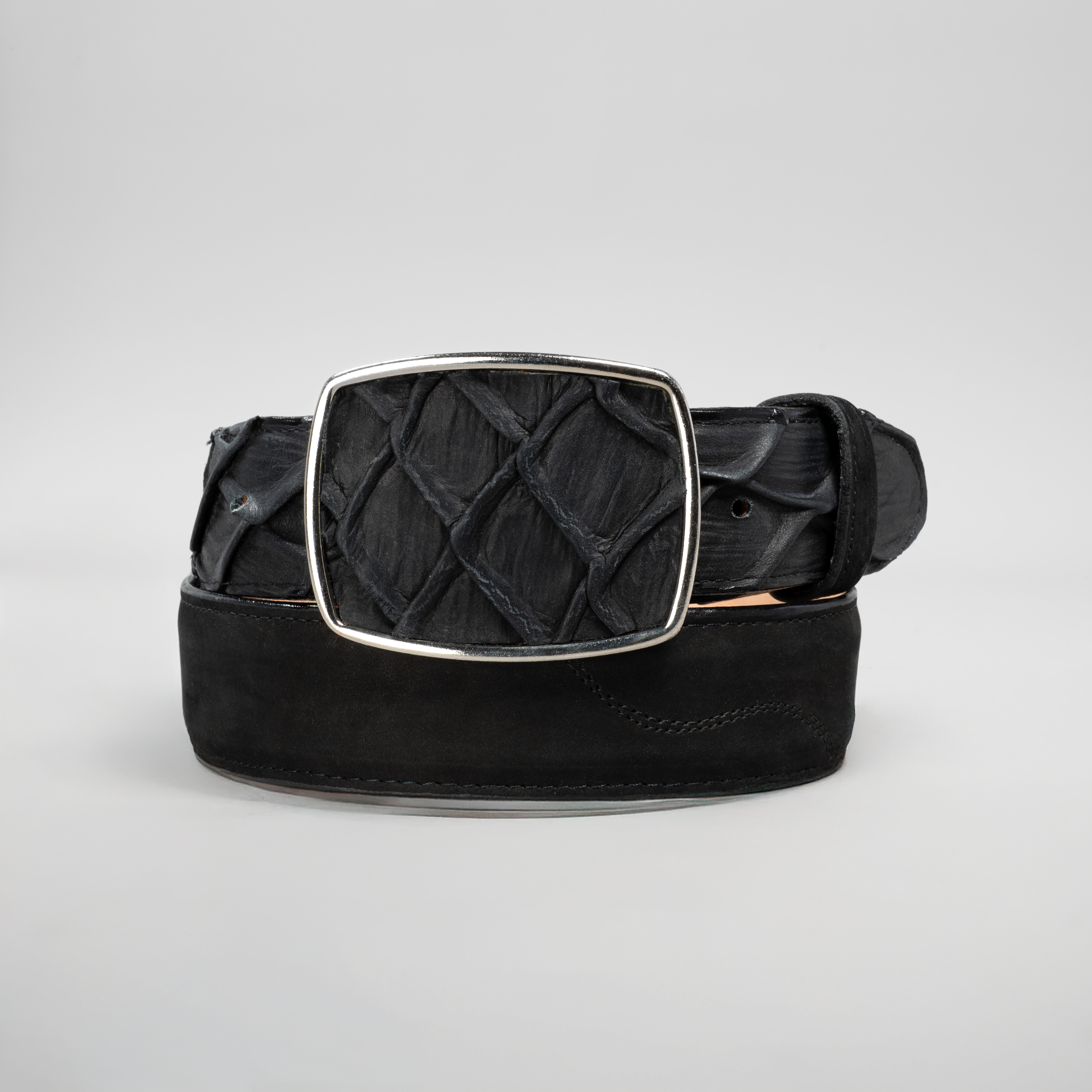 Crafted from genuine pirarucu leather, this statement cowboy belt honors the legendary freshwater giant with distinctive scaled texture and unmatched durability. The substantial metal buckle commands attention while the premium leather construction ensures lasting wear through seasons of ranch work or weekend adventures. A bold tribute to one of nature's most formidable fish, this belt merges authentic Western heritage with conversation-starting design. Perfect for those who appreciate quality craftsmanship and distinctive style.